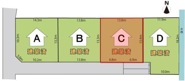 私道 南 幅員4.8m (接面13.7m) |