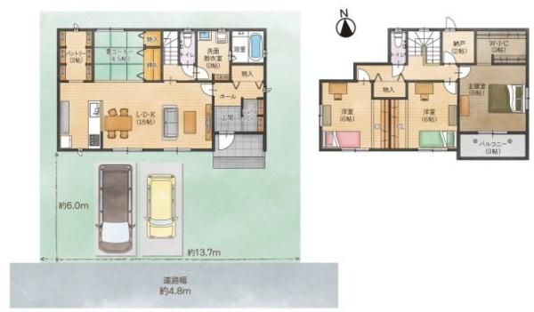 ■南道路、日当り良好 ■雨具も片付くSIC ■まとめ買い派に嬉しい、パントリー付き ■季節物スッキリ片付くWIC ■窓付き換気OKの納戸 ■買い物施設充実エリア