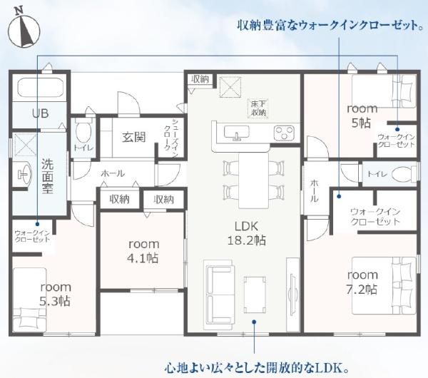 | 間取り詳細 | LDK18.2畳(1F)、洋7.2畳(1F)、洋5.3畳(1F)、洋5畳(1F)、洋4.1畳(1F) | 都市計画 | 非線引区域 |